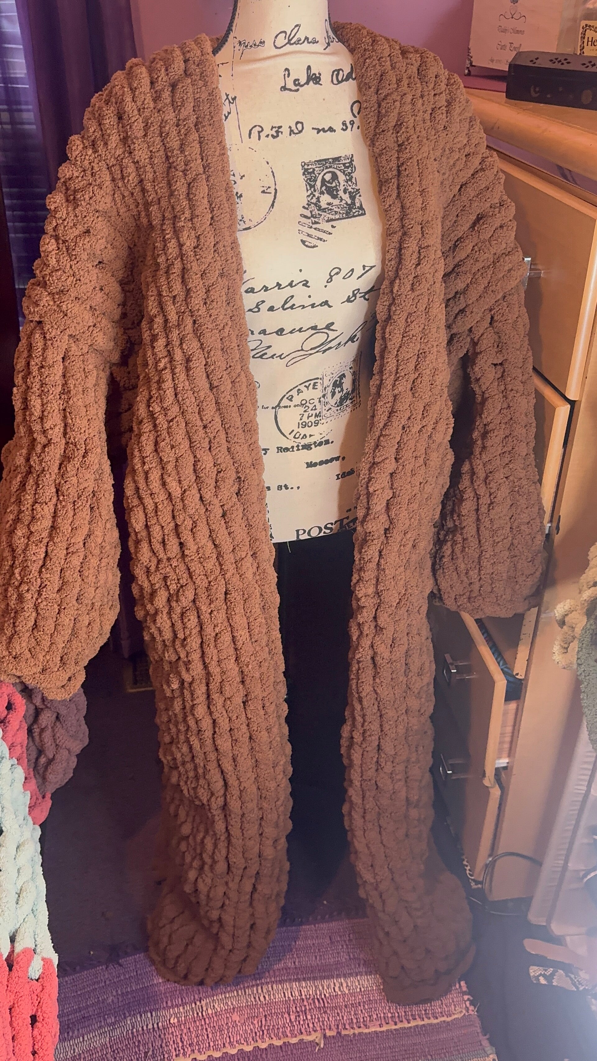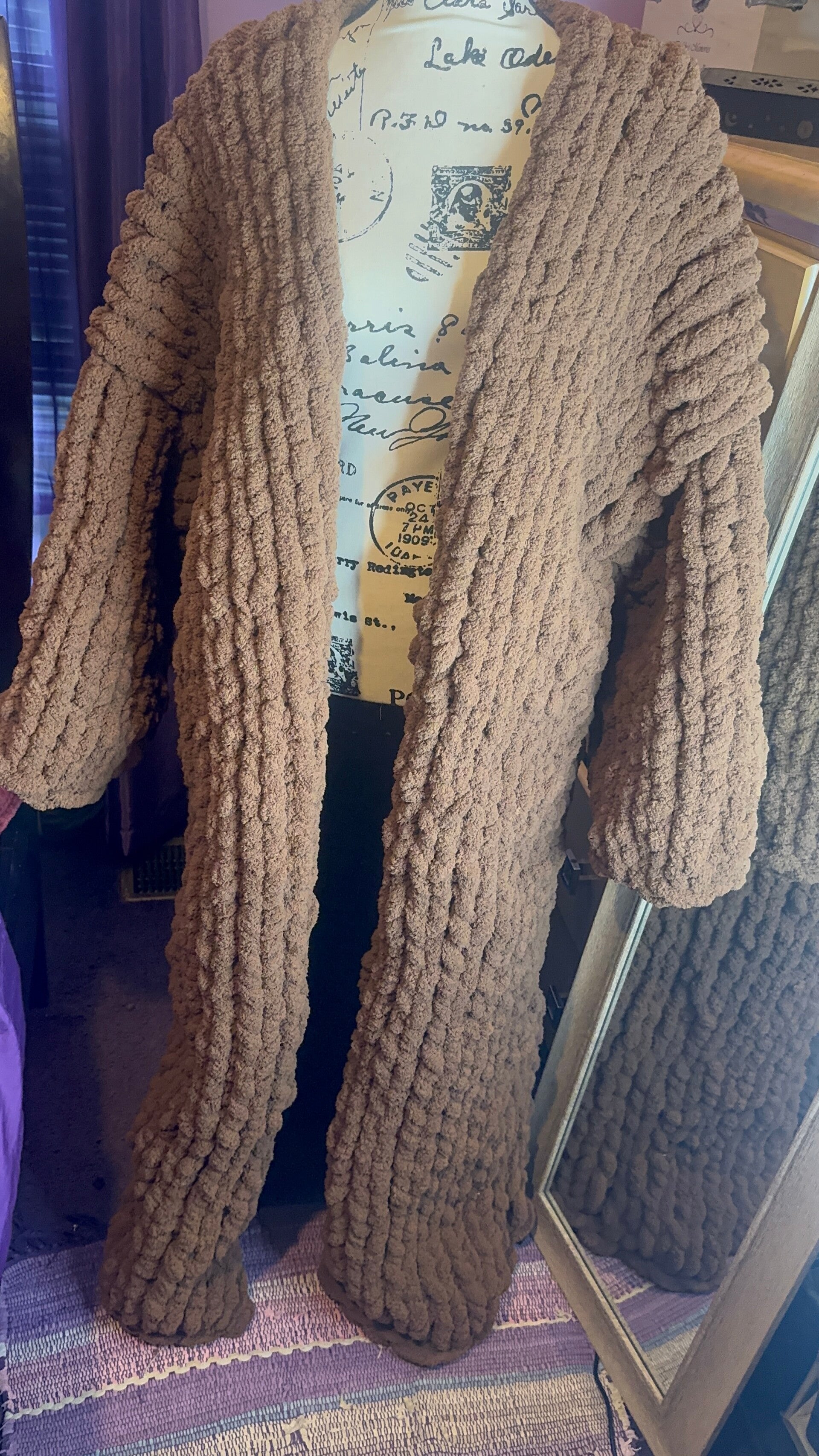 Hand Knit long chocolate brown coat